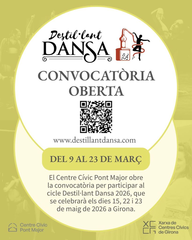 El Centre Cívic Pont Major obre la convocatòria per participar al cicle Destil·lant Dansa 2026, que es celebrarà els dies 15, 22 i 23 de maig de 2026 a Girona.
